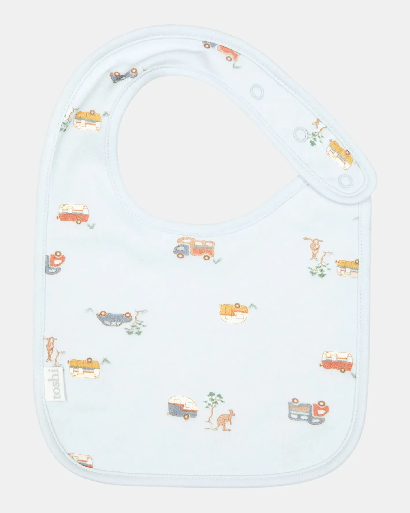 The Toshi Baby Bib Classic is crafted from the finest quality 100% cotton. An original and exclusive Toshi print design is featured. Presented harmoniously with this is the Dreamtime certified 100% organic cotton bib. The bibs have absorbent cotton padding on the reverse for moisture protection. Conveniently located press studs create adjustable sizing. Toshi baby bibs are functional, versatile and gentle on delicate skin. Bon appetit!
