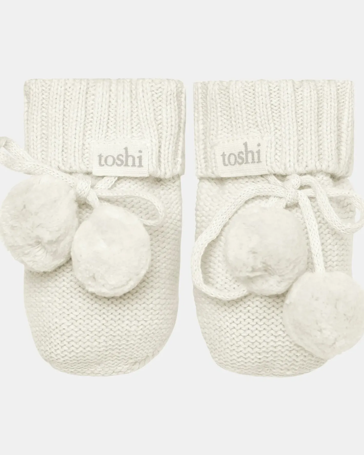 The much loved Toshi Organic Baby Booties Marley are made from the finest quality certified 100% organic cotton yarn. Organic certification ensures the booties are gentle on your babies delicate feet, as well as the environment. The beautifully-textured melange yarn brings an element of refinement to this Toshi baby accessory. Carefully crafted with a ribbed knit cuff, Toshi booties stay up while gently contouring the wearer. Our booties are ankle height and are designed to protect precious tootsies during rest and play. Cute pom poms create a whimsical style and the ties ensure a snug fit. Toshi booties are packaged in a quality box and make an ideal newborn gift.
