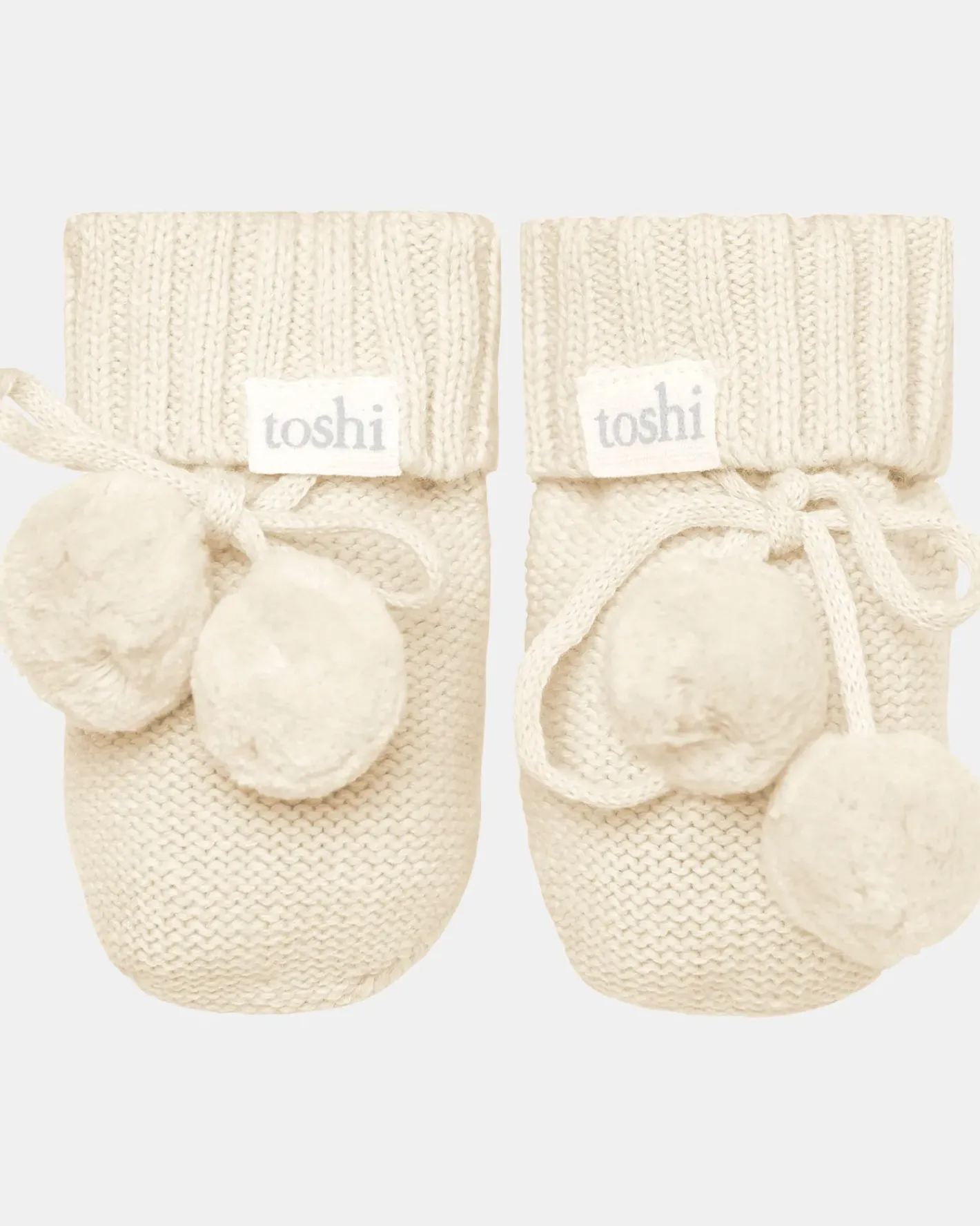 The much loved Toshi Organic Baby Booties Marley are made from the finest quality certified 100% organic cotton yarn. Organic certification ensures the booties are gentle on your babies delicate feet, as well as the environment. The beautifully-textured melange yarn brings an element of refinement to this Toshi baby accessory. Carefully crafted with a ribbed knit cuff, Toshi booties stay up while gently contouring the wearer. Our booties are ankle height and are designed to protect precious tootsies during rest and play. Cute pom poms create a whimsical style and the ties ensure a snug fit. Toshi booties are packaged in a quality box and make an ideal newborn gift.